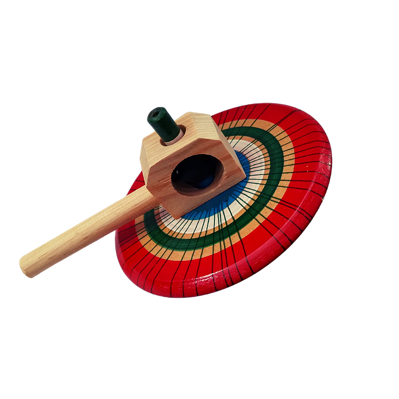 Medida del Trompo: 16.5 x 12.5 x 11 cm.